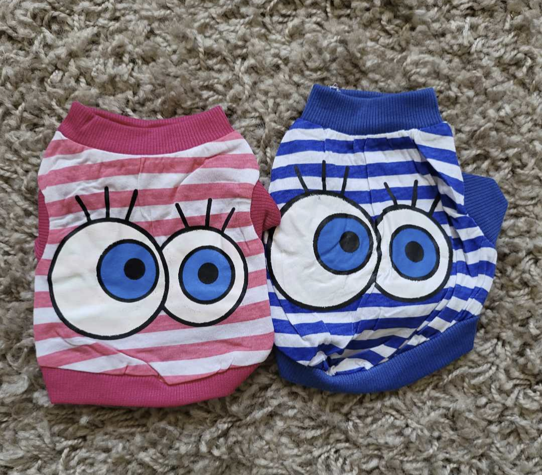 Introducing our latest fashion statement, these two shirts with eyes on them are sure to turn heads wherever you go. Made from high-quality fabric, these shirts are designed to provide both comfort and style. With their unique eye design, they add a touch of playfulness to any outfit. Perfect for pet lovers, these shirts are a must-have addition to your wardrobe. Get ready to make a bold fashion statement with these eye-catching shirts!