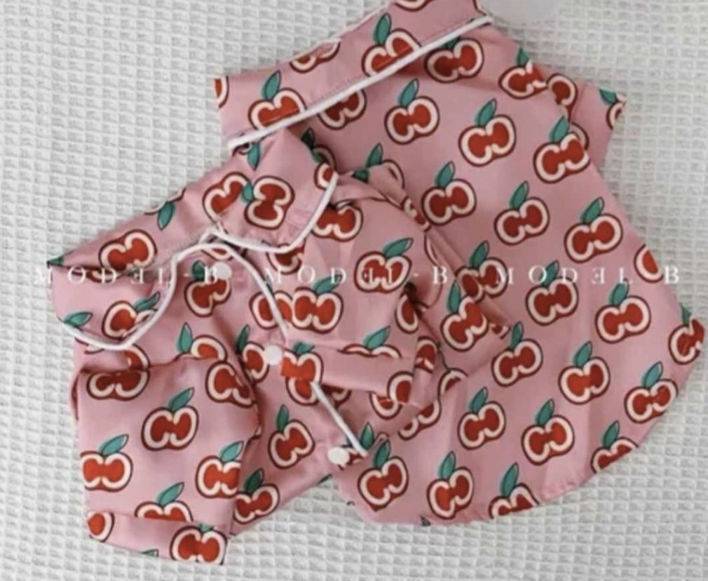 Introducing our adorable pink dog shirt with cherries! This fashionable garment is perfect for pets who love to make a statement. Made with high-quality materials, it ensures comfort and durability for your furry friend. The vibrant pink color and charming cherry pattern add a touch of sweetness to any pup's wardrobe. Get ready for compliments and smiles wherever you go with this pajama top for pets.