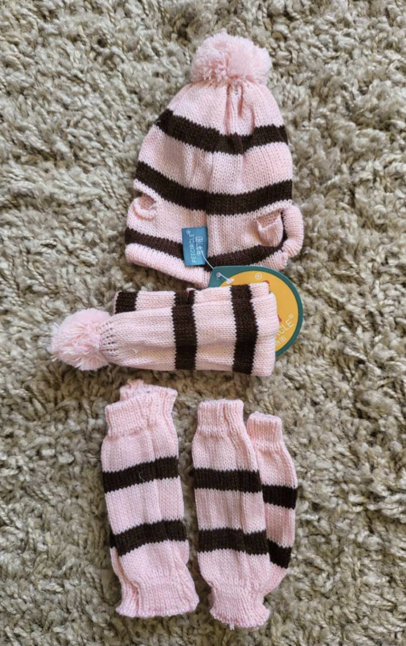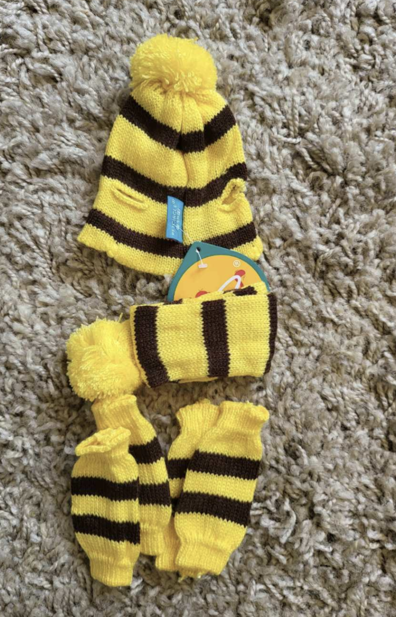 The cute bee design adds a touch of fun to your pet’s outfit, making them even more irresistible. Get this set of hat, scarf, and leg warmers for your precious pet today!