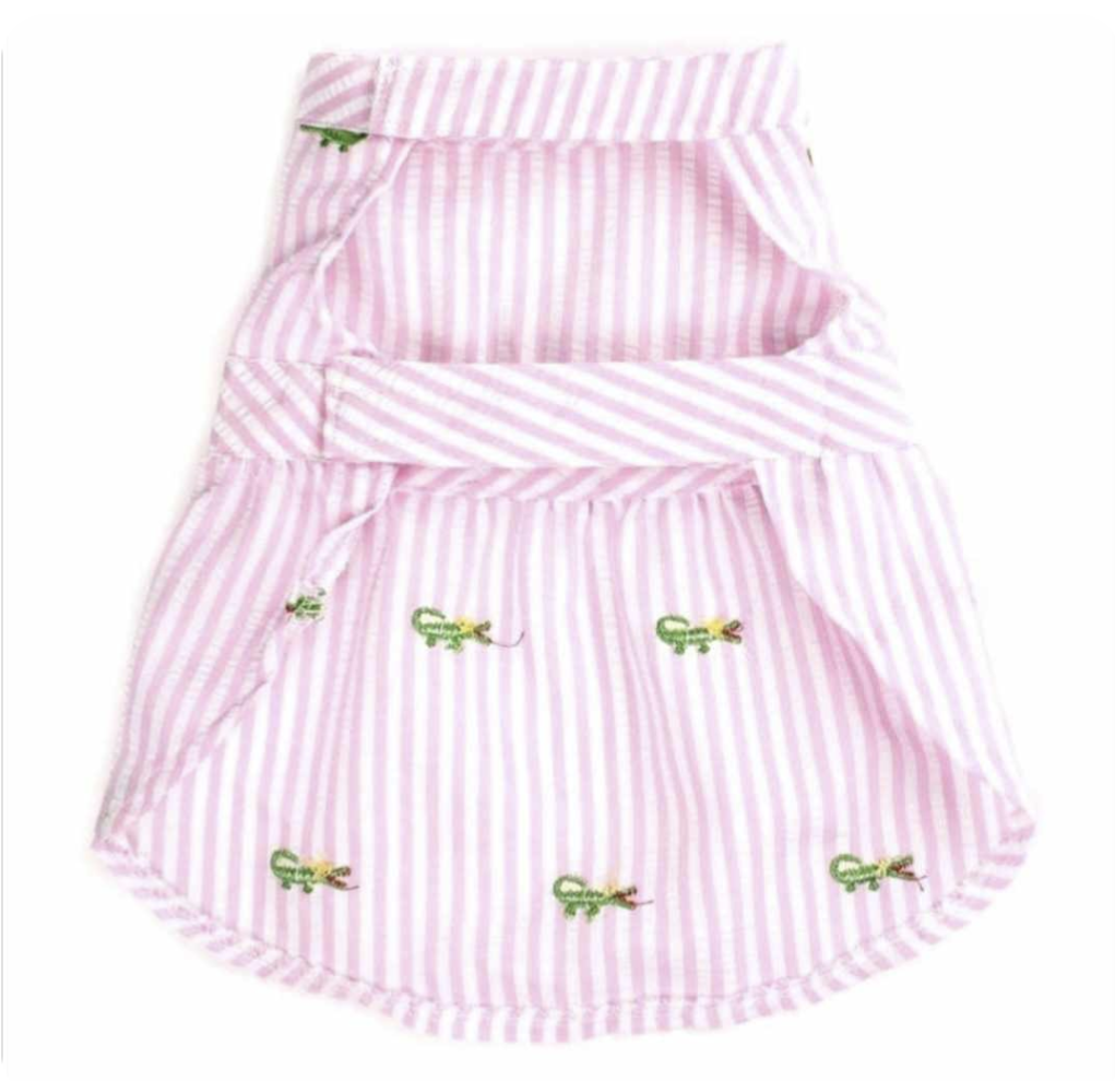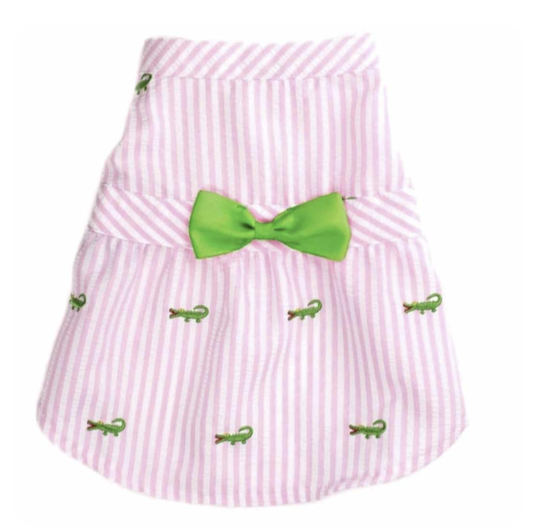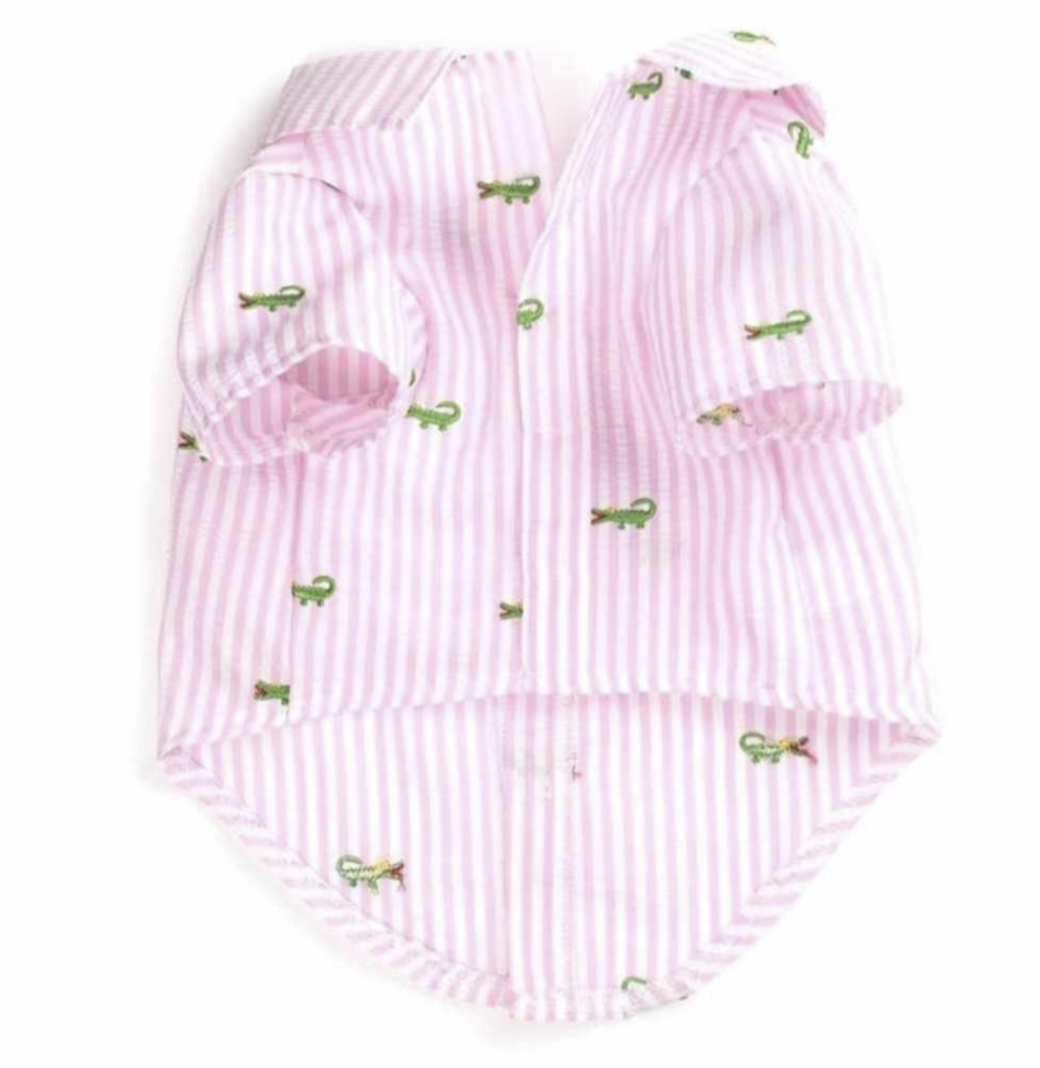Introducing our latest fashion find, the perfect dress & shirt for dog lovers! This pink and green striped dress & shirt combo features a trendy green crocodile print, making it a unique and stylish choice for any occasion. Made with high-quality materials, this dress & shirt is comfortable and durable, ensuring your furry friend stays fashionable and comfortable. Get ready to turn heads with this adorable dress & shirt that combines playful patterns with a touch of elegance.