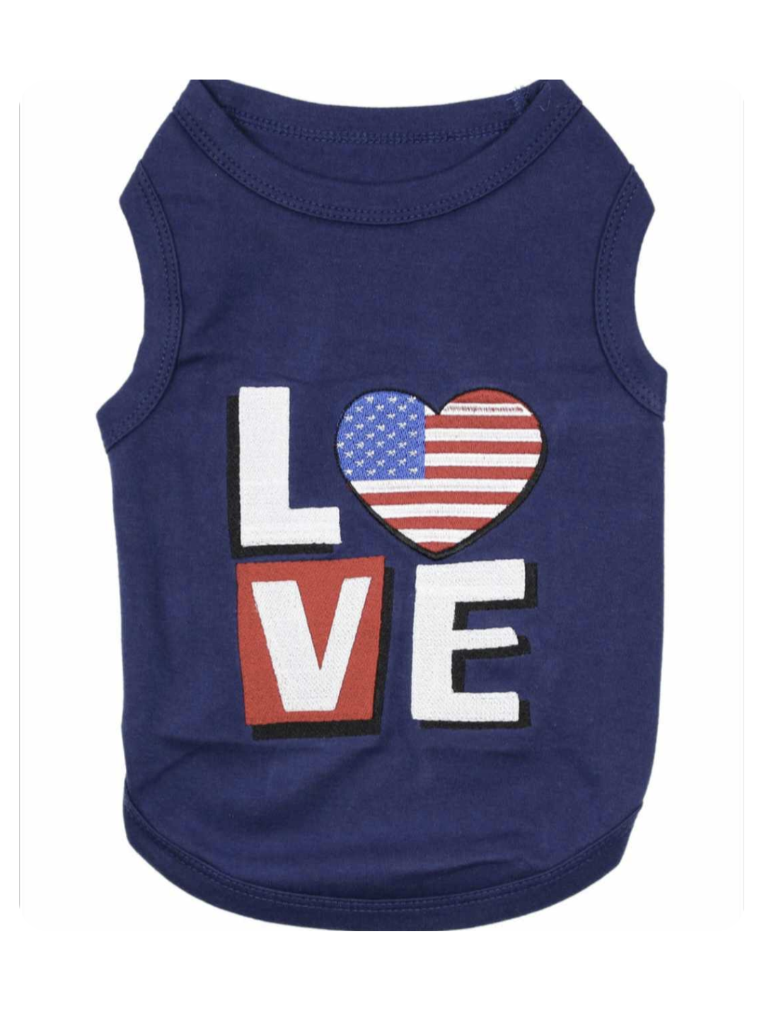 Introducing our adorable dog shirt, perfect for patriotic pets! This shirt features the word "love" beautifully adorned with an American flag design. Crafted with care, this shirt is made from high-quality materials to ensure comfort and durability for your furry friend. Show off your pet's love for their country with this stylish and patriotic dog shirt. Get ready to receive compliments wherever you go!