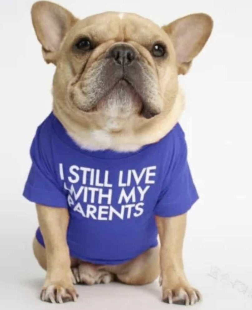 Introducing our adorable dog wearing a shirt that proudly declares "I still live with my parents." This charming pet accessory is perfect for showcasing your furry friend's playful personality while adding a touch of humor to their wardrobe. Crafted with high-quality materials, this shirt ensures comfort and durability for your beloved companion. Let your dog make a fashion statement and bring smiles to everyone's faces with this witty and delightful garment. Get ready to receive compliments and laughs wherever you go with your four-legged family member!