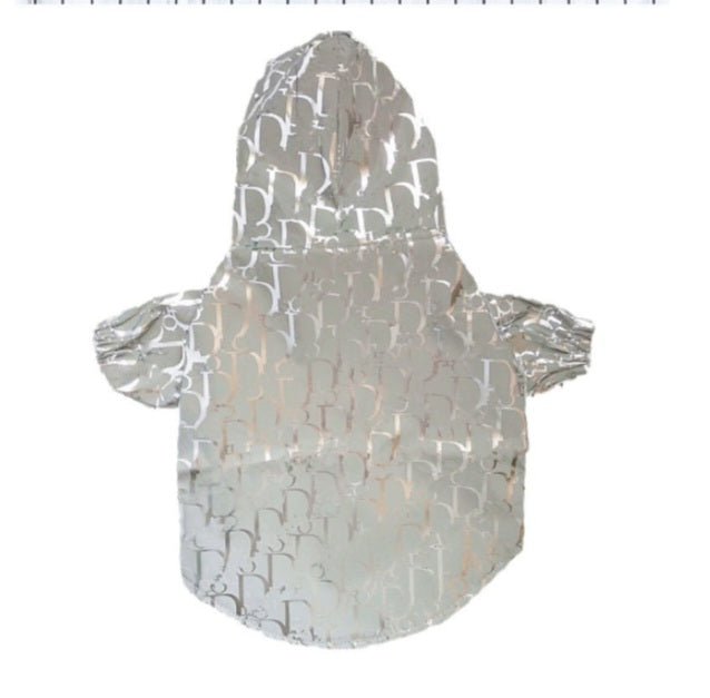 Keep your furry friend stylish and dry with our pet raincoat featuring a stunning gold foil print. This eye-catching design not only adds a touch of glamour but also ensures your dog stays protected from the elements. Lightweight and comfortable, it's perfect for rainy walks while making a fashion