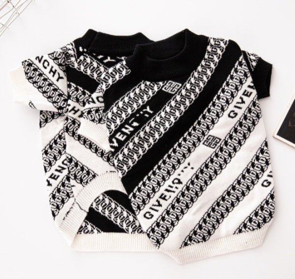 Featuring a chic black and white pattern, this sweater not only provides warmth but also adds a touch of elegance to your pet's wardrobe. Perfect for chilly days, it's designed for comfort and ease, ensuring your pet looks fabulous while staying snug.